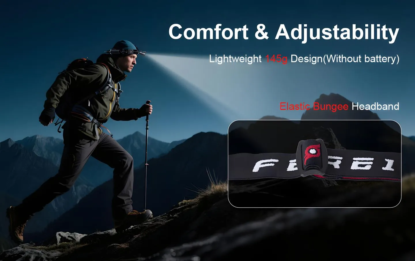 La FEREI HL20II fournit un éclairage puissant et ciblé pour l'alpinisme, le trail running, la pêche et les opérations de sauvetage. Conçue avec une protection intelligente et une résistance à l'eau IPX4, elle fonctionne dans des conditions difficiles. Un bandeau réglable assure le confort lors d'une utilisation prolongée, tandis que plusieurs modes permettent la navigation, la signalisation et les interventions d'urgence - un éclairage fiable lorsque c'est le plus important.