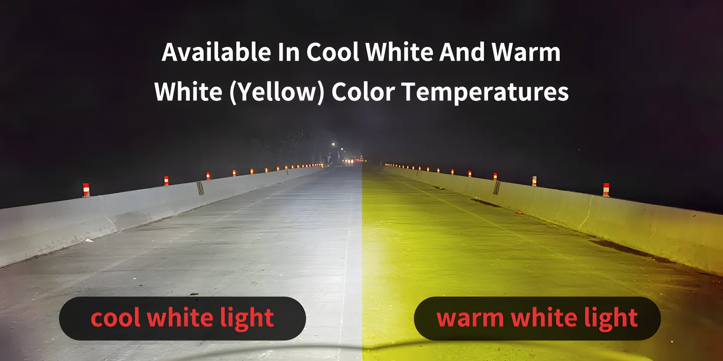 - 두 가지 색온도 -이중 색온도 옵션 - 선명도를 위한 차가운 흰색, 안개 및 먼지 투과를 위한 따뜻한 흰색(노란색 빛)