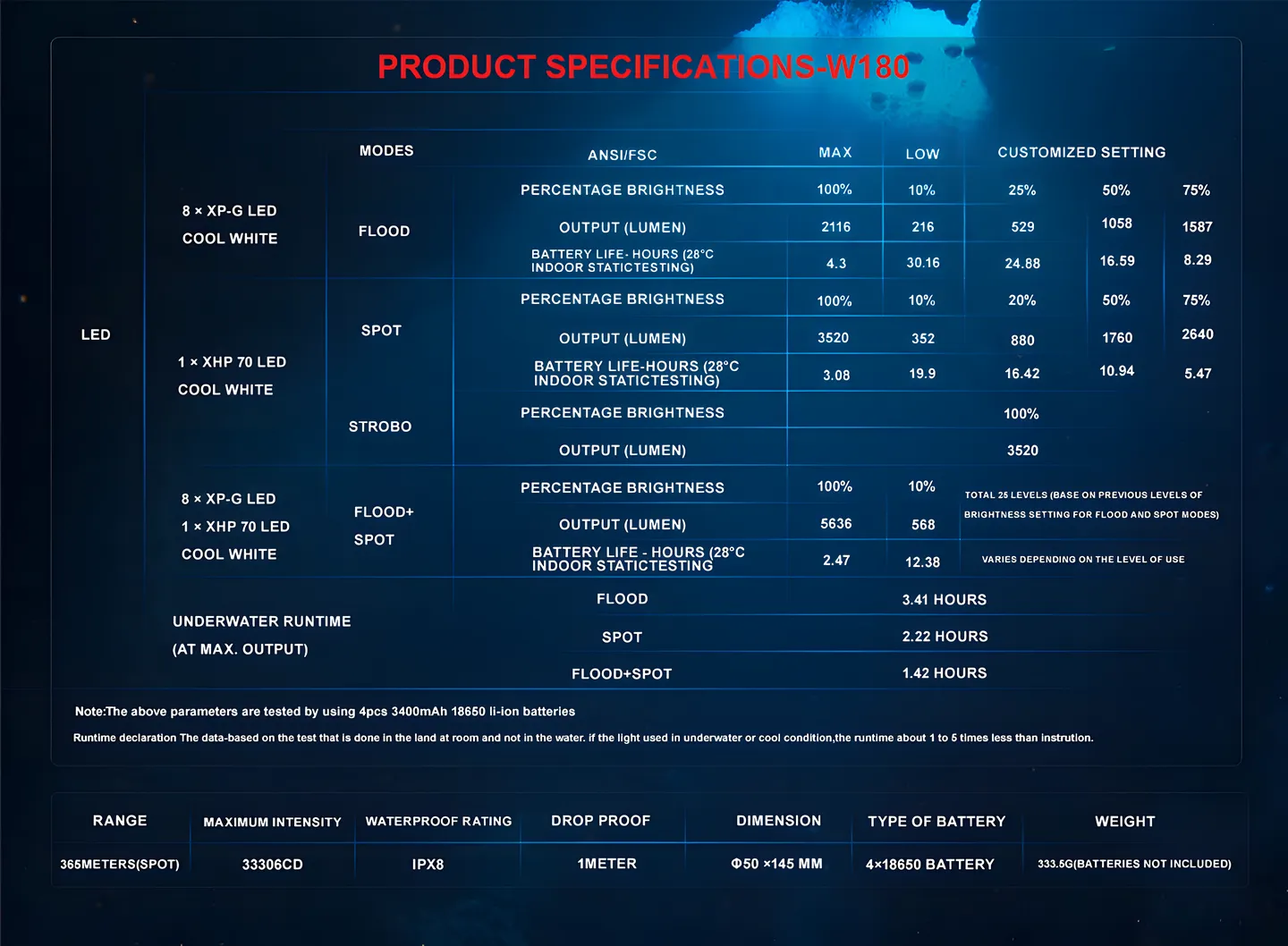 FEREI W180 SPEARFISHING LED DIVING LIGHTS USER MANUAL
