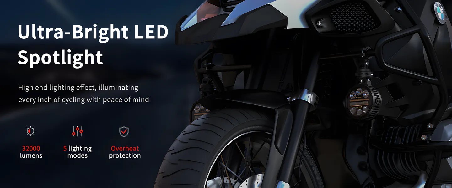 Designed for the demands of serious motorcyclists, this auxiliary driving light combines advanced lighting technology with rugged durability to enhance visibility and safety in challenging environments. Engineered for off-road adventures, long-distance touring, and urban night riding, it delivers reliable, high-intensity illumination tailored to diverse conditions. Featuring intelligent thermal management, robust waterproofing, and impact-resistant construction, the light ensures stable performance in extreme weather and rough terrain. With integrated turn signals, horn-activated flash alerts, and user-friendly controls, it offers enhanced functionality for safer, more confident riding.