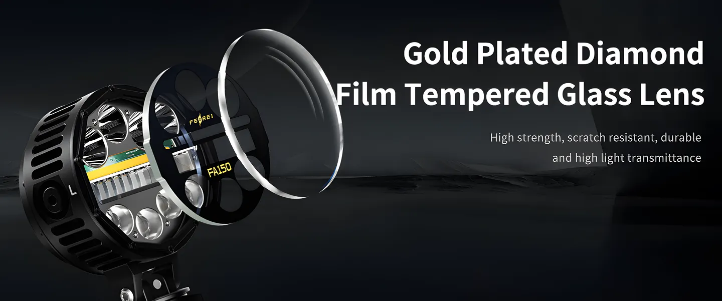 12. Specially made high-transmittance tempered glass lens, with a thickness of up to 6mm, and coated with diamond film, high strength, scratch-resistant;